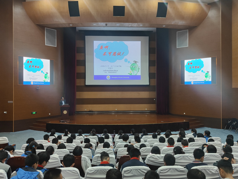 活动伊始,著名鱼类学家钟俊生教授为同学们带来了一场生动有趣的传统文化主题讲座:中国鱼文化之不可思议的鱼。钟俊生首先给同学们一起讲解了鱼的许多有趣科普知识,然后从鱼类十个不可思议的方面以及结合自己求学、科研经历,通过用生动的案例和有趣的小故事绘声绘色给同学们讲述鱼类多样性、形态适应、行为的功能和生态的适应,带领学生走进一个未知的鱼类世界。参加讲座的学生们沉浸在对海洋鱼类知识的巨大学习热情中,不时地举手与老师互动,提出自己的疑惑和大胆设想,老师也一一给予解答。 最后,钟俊生向全体学生提出,我们要珍惜海洋鱼类资源,保护渔业资源,爱护环境,保护和合理利用浩瀚大大海中的生物资源。