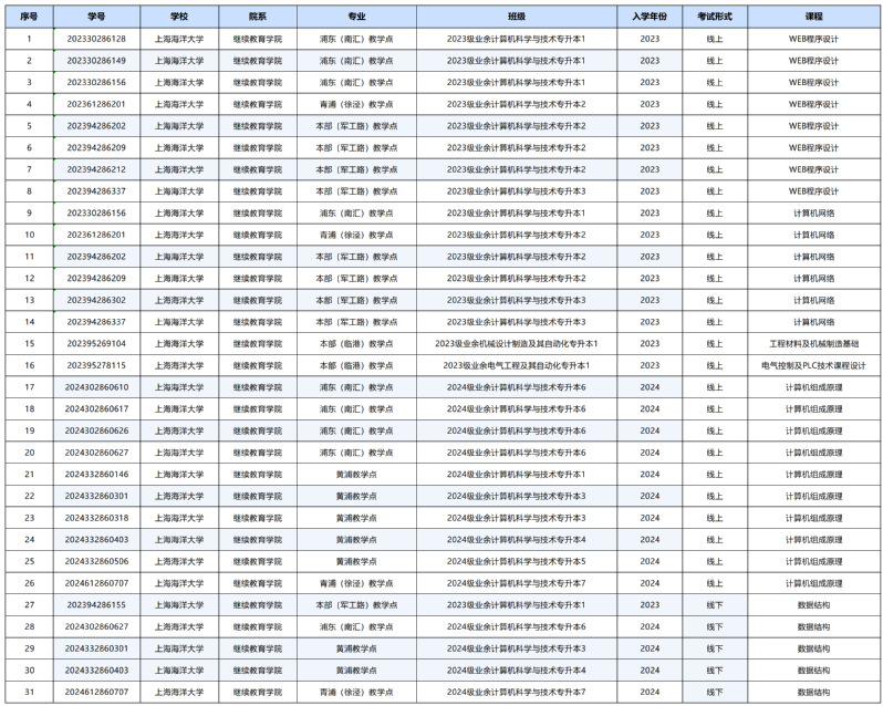 根据《新葡萄8883官网AMG学生管理服务手册》(2022版)第四章第十八条:一门课程累计缺课达到三分之一以上,或擅自缺考,或考试作弊者,该课程成绩以零分记载,不得参加补考,该课程必须重修的规定要求,经学历部在考试周周三13:00的截止日后核查学生的学习情况,共有31门次课程将取消该学生该门课程的考试资格(见下表)。